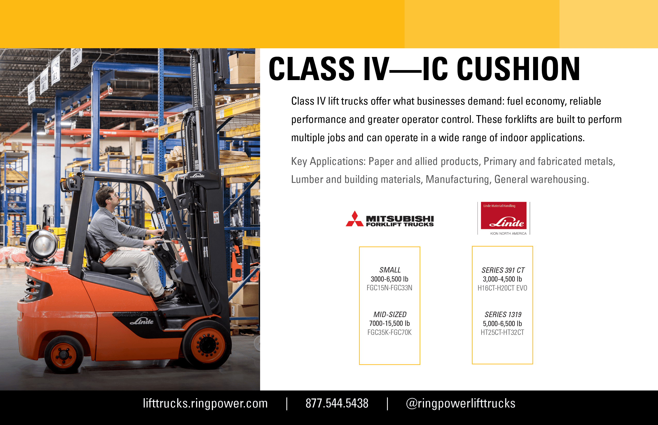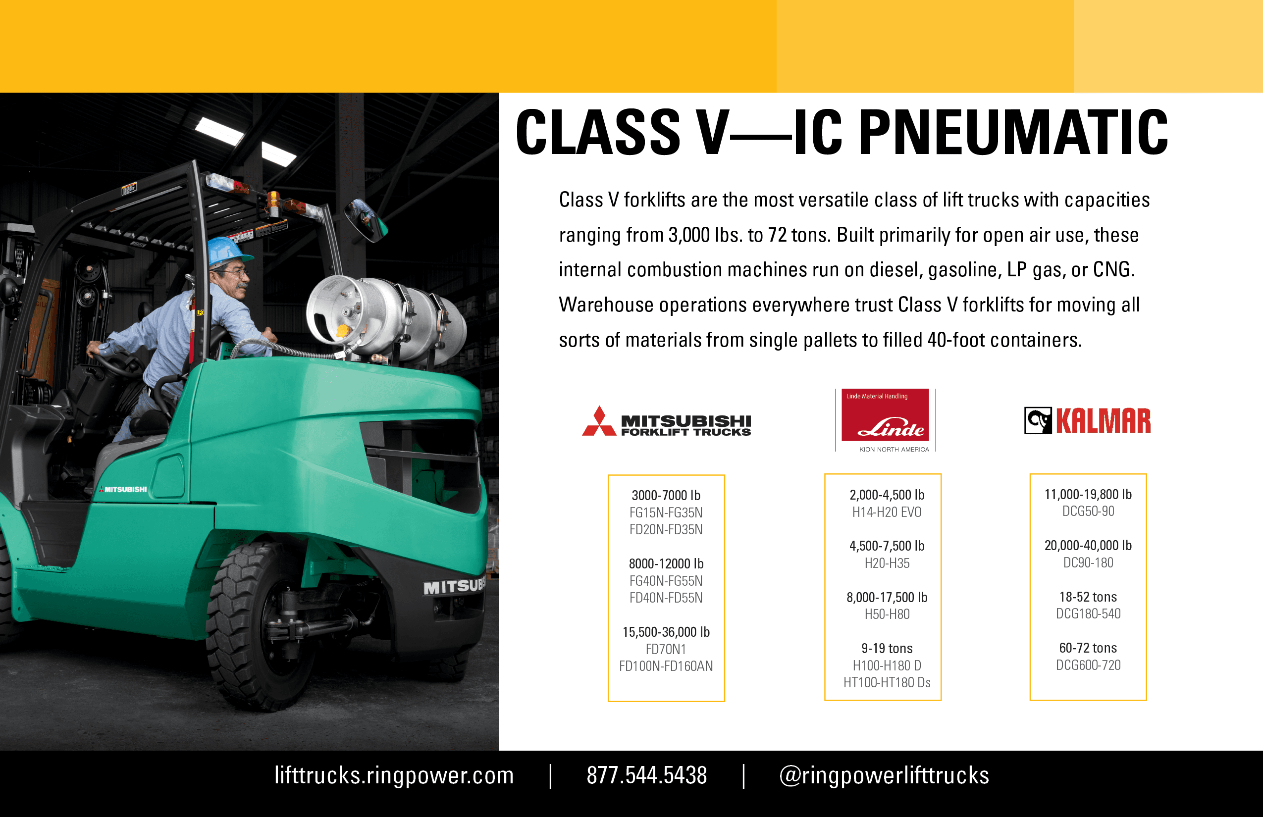A one-stop-shop for all Ring Power Lift Trucks sales resources.